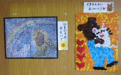 図工展に出品したなかよし学級の作品「くませんせい ありがとう」と「ひまわりのおもいで」の賞状が届き、全校朝会で校長先生から子どもたちに手渡されました。作品展でも展示していた作品ですので、たくさんの方にも観ていただけたことと思います。