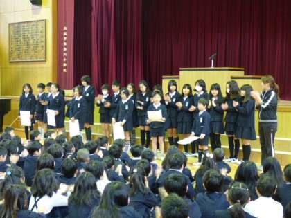 全校朝会で、図書委員会から「年間たくさん本を読んだ児童」への表彰がありました。