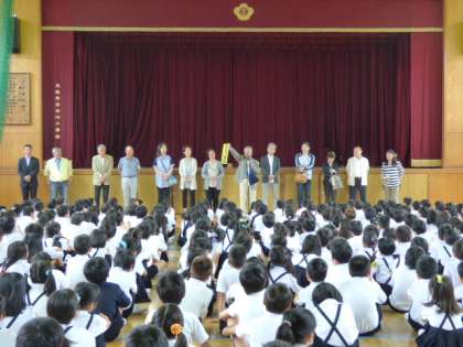 木川地域民生委員・児童委員協議会会長の安西さんからは、学校の正門にもはってある「5つの約束」についてお話をしていただき、子どもたちへ「みんな早寝早起きをして、健康に過ごしてください。」「困ったことがあったら、遠慮なく相談してください。」とメッセージをいただきました。