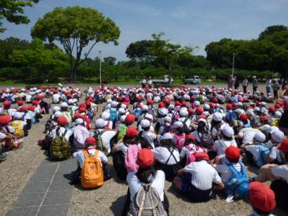 全校児童で考えためあて「みんなが協力して 笑顔あふれる全校遠足にしよう」を合言葉に、服部緑地に行きました。