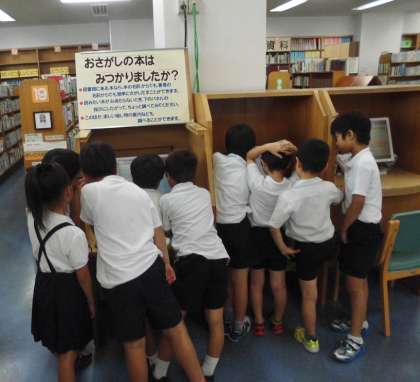 館内を自由に見学するときには、コンピューターで本を検索するコーナーや、大好きな本のある書架のところで、多くの子どもたちが立ち止まっていました。