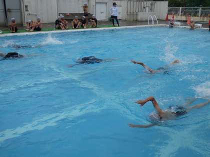 朝からの雨模様で、できるかどうか心配されたプール開きですが、予定通り行うことができました。
