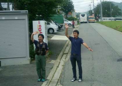 宿舎の方に見送られ、ハチ高原を出発しました。