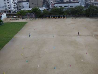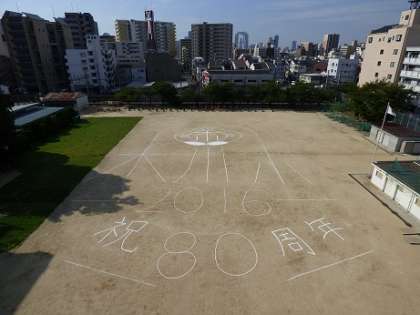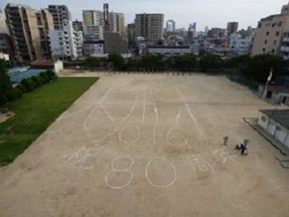 今朝、木川小創立80周年を記念して、人文字の写真を撮りました。全校で校庭いっぱいに人文字をつくり、屋上から撮影しました。暑い中でしたが、みんなでがんばりました。