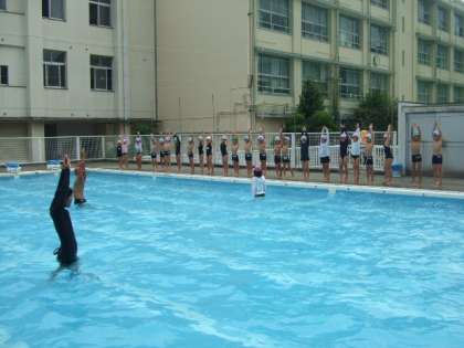 先週に続き、2年生の水泳指導の時間にゲストティーチャー2人に来ていただき、「水泳出前講座」の2回目を行いました。