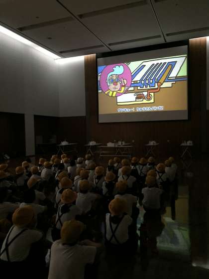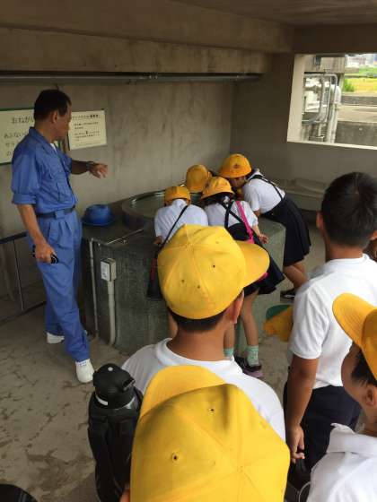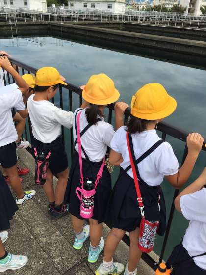 水をきれいにする仕組みをみんなで聞いた後、広い浄水場の中を担当の方が、子どもたちにもよくわかるよう案内してくださいました。