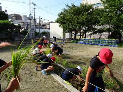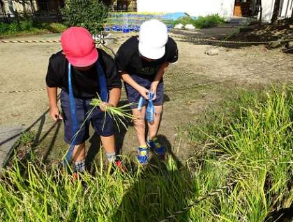 総合的な学習の一環として、5年生が米づくりに取り組んでいます。