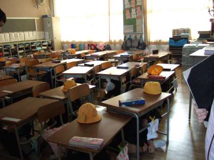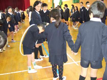 児童集会でフラフープ送りのゲームをしました。とても楽しそうにゲームができました。集会委員会は新学期早々にもかかわらず、自分たちでゲームを考え司会進行をしていました。10時からは地震と津波を想定した避難訓練を行いました。運動場が雨で使用できないので講堂に集合しました。その後、津波のため3階以上に避難するので1年生は4階音楽室前に移動しました。どの学年もほとんど私語がなく緊張感を持って訓練ができました。