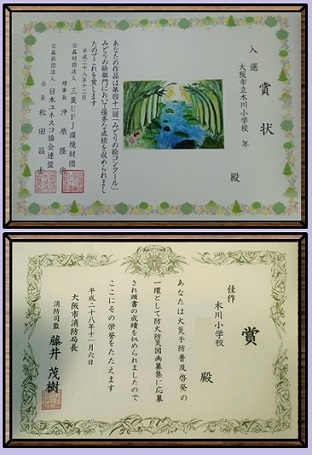 「みどりの絵コンクール」と「防火防災図画コンクール」の入賞者への表彰です。