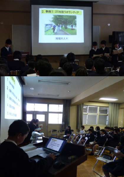 6年生が「町の幸福論 〜コミュニティデザインを考える〜」という単元の学習で、プレゼンテーションに取り組みました。