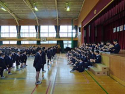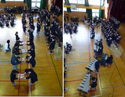 お返しに6年生からもすてきな歌と合奏がプレゼントされました。また、そのほかにも、6年生の作ったぞうきんが、各クラスの代表と教職員に手渡されました。
