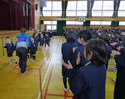 校長先生のお話のあと、6年生の児童がみんなを代表して、歓迎の言葉を述べました。