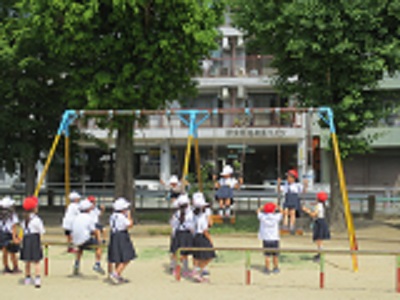 公園では、いろいろな施設の確認をしたり、生き物を観察したり、公園での遊びの約束を確かめて遊具で遊んだりしました。