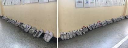 洗ったうわぐつは、教室横の廊下でかわかしています。