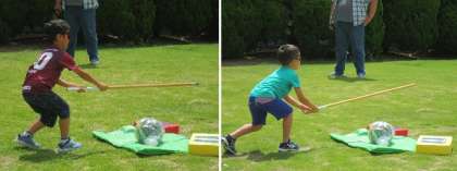 スイカ割りでは、「右!右!」「もっと前!」などみんなで声を掛け合って、楽しくできました。