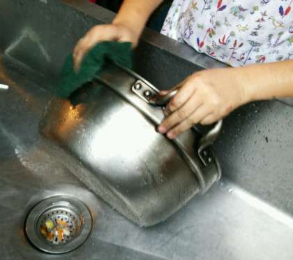 班で協力して、しっかり洗い物をしたり、ごみを拾ったりしました。