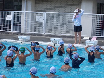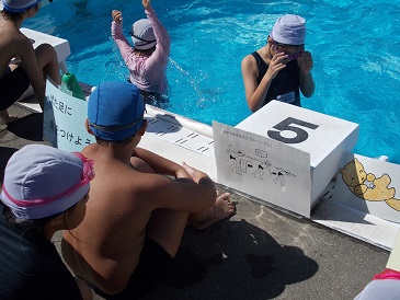 子どもどうしで教え合う場面が見られたり、水の苦手な子どもが楽しそうに練習したりしている様子も見られ、みんなしっかり学習に取り組むことができていました。