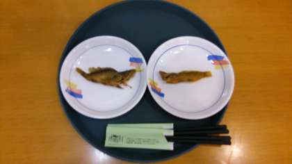 フィッシングで魚を釣り上げた子には、唐揚げのおまけ付き。