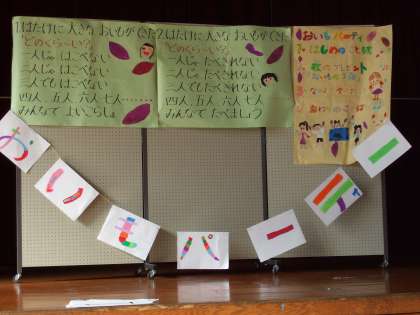 2年生が「おいものうた」を楽器の演奏入りで1年生にプレゼントしたり、みんなで仲よくおいもを食べたり、・・・、とても楽しいパーティーでした。
