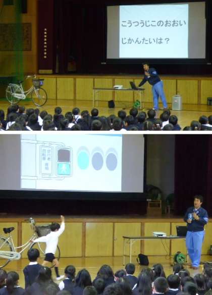 本日2時間目に低学年、3時間目に高学年の「交通安全教室」を実施しました。