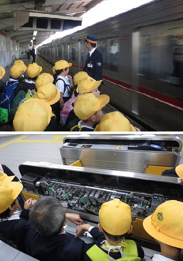 駅員さんから安全のための努力や工夫についてお話を聞いたり、券売機の裏側や自動改札機の内側などいろいろなものを見学したりしました。