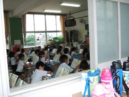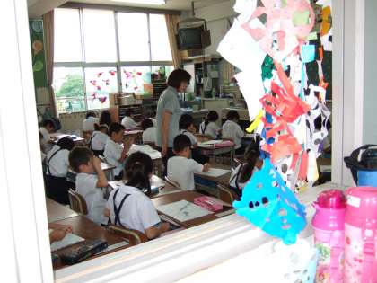 5時限目の1年生の様子です。1組はひらがなの学習、2組は鍵盤ハーモニカの練習です。学習の様子が板についてきました。蒸し暑い中、担任の先生の指導のもと、一生懸命学習していました。成長を感じます。一番下の写真は、色セロハンを使ったかわいらしい作品です。