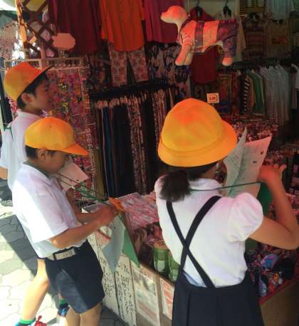 グループごとに取材をし、商店街や地域の人々とふれ合いました。