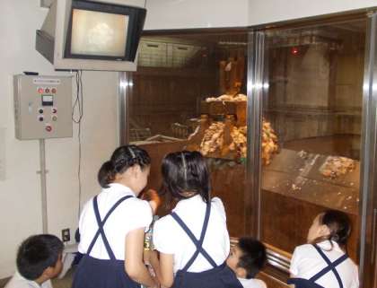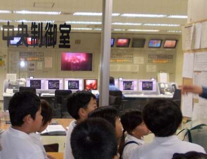 子どもたちは、家庭から集められた多くのごみをためているごみピットや、そのごみを燃やして処理する焼却炉、ごみを安全に安定的に焼却するために各設備から送られてくるデータをコンピュータ画面で監視しながら運転操作を行っている中央制御室など、工場内の施設を興味深く見て回っていました。