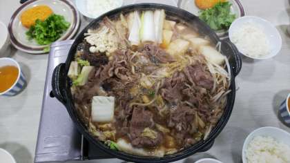献立は、すき焼きとコロッケです。