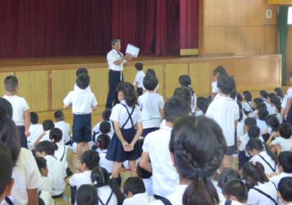 始業式では、校長先生のお話の後、代表の4年生二人が2学期の目標などを発表しました。