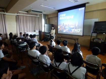 地球温暖化防止コミュニケーターの気象キャスターの方をゲストティーチャーにお迎えし、地球温暖化の最新情報やその対策について学習しました。
