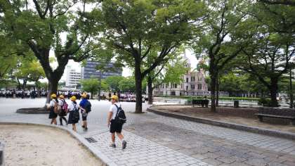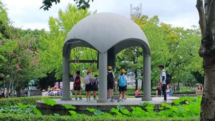 グループにわかれて、平和記念公園の中にある慰霊碑や供養塔などを見て回りました。