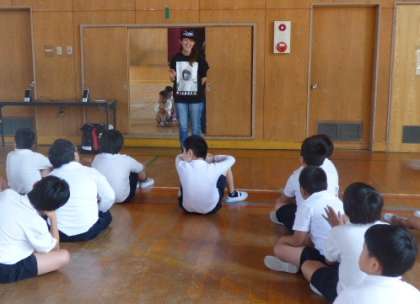 「めっちゃ難しい!」と言いながらも、先生のダンスを見ながら、みんなのりのりでした。