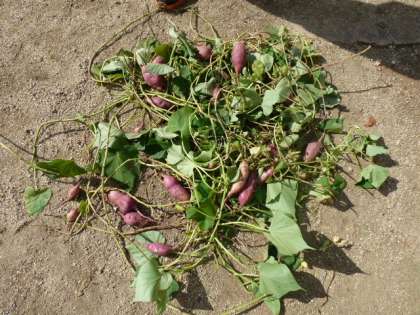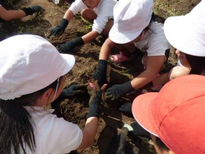 学習園に植えたさつまいもの苗が育ち、収穫時期を迎えました。