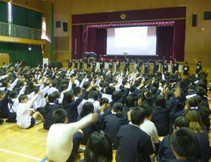 太鼓にヒップホップダンス、手話つきの歌など、練習の成果が存分に発揮されていて、発表が一つ終わるごとに、全学年の子どもたちと参観されている保護者や地域の方から大きな拍手が起こりました。