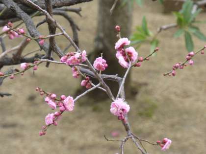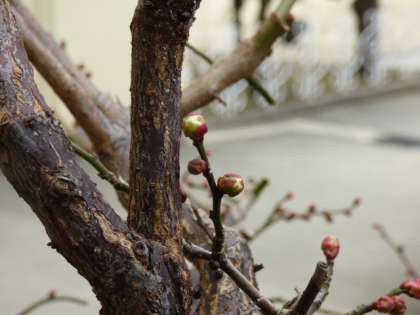 学校では、正門横の梅の花が咲き始めています。プール横の白梅のつぼみもずいぶん膨らんできました。
