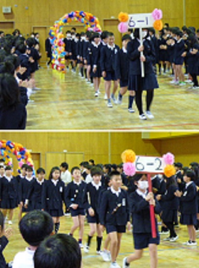 最後は、『にじいろ』をみんなで歌った後、退場する6年生に拍手を送りました。
