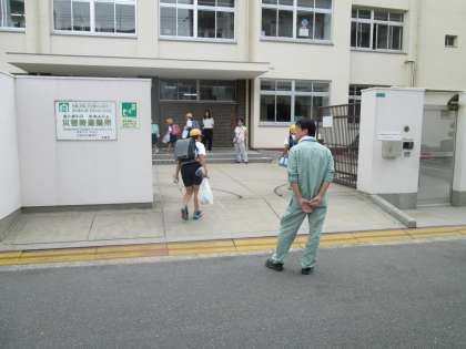今日は、2学期の始業式がありました。地域やPTAの子ども見守り隊の方々に見守られて、子どもたちは、元気に登校しています。始業式の前に、転入生の紹介、市水泳大会の表彰があり、始業式での校長講話は、「目標」をもつことや「命」を大切にすることについての話がありました。