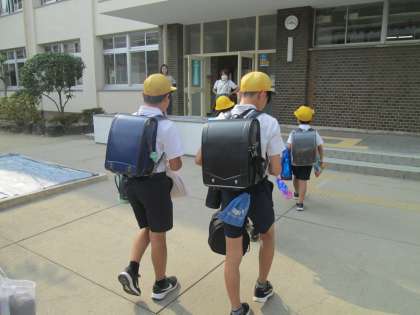 8月27日(水)朝の登校〜明日は、6年生修学旅行説明会(16:00-)があります。