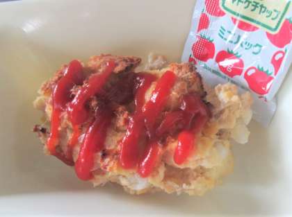 ケチャップ(袋)をかけて食べましょう。