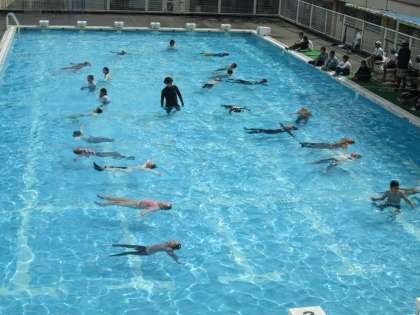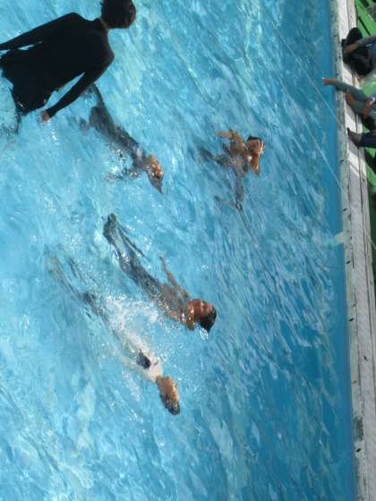 5限目に4年生が着衣泳の学習に取り組みました。衣服を着たまま水に落ちた状況を体験しました。あわてずに冷静に浮いて救助を待つ方法を学んでいます。