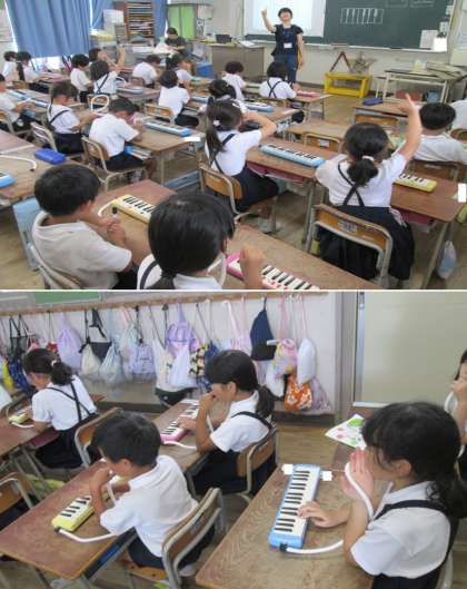 9月8日(月)1年生 音楽〜はじめて鍵盤ハーモニカで演奏しました。