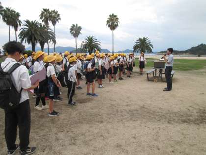 休暇村大久野島に到着、開舎式です。