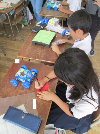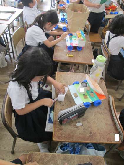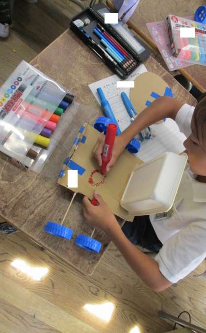 2年生が生活科の学習で「うごうこくおもちゃ」を作っています。