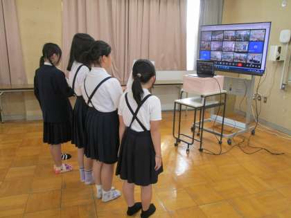 今朝は、全校朝会がありました。保健委員会から、今月の保健目標「目を大切にしよう」の発表がありました。校長講話では、挨拶の基本【語先語礼】が子どもたちがよくできていることへの賞賛と「相手の目を見て」「いつも」「自分から先に」「続けて」挨拶することの大切さについての話がありました。