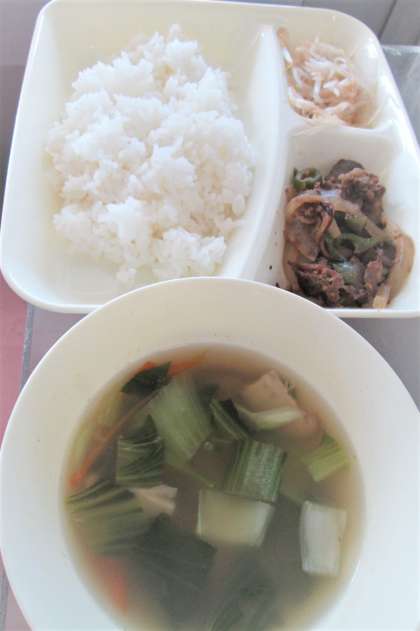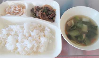 今日の給食は、プルコギ、トック、もやしのナルム、ごはん🍚、牛乳🥛です。
