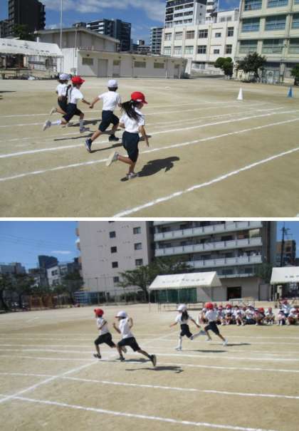 3限目に1年生が個人走に取り組んでいました。1年生も全力で走っています。運動会当日、子どもたちが一生懸命に走る姿をぜひご覧ください。