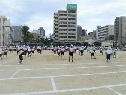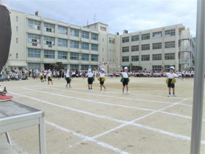 1年生にとって小学校生活最初の運動会です。細かな振り付けをしっかりと覚えて、笑顔で踊っていました。全体の動きも頑張っていました。