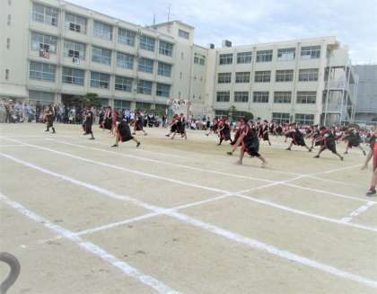 ソーラン節の迫力ある演技が光っていました。かけ声も運動場に響いていました。