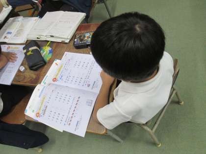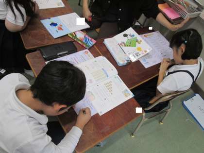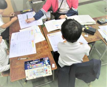 なかよし学級の子どもたちが算数の学習に取り組んでいます。文章問題の課題をかけ算を使って、ていねいに解決しています。